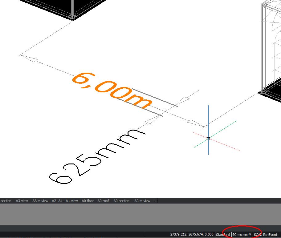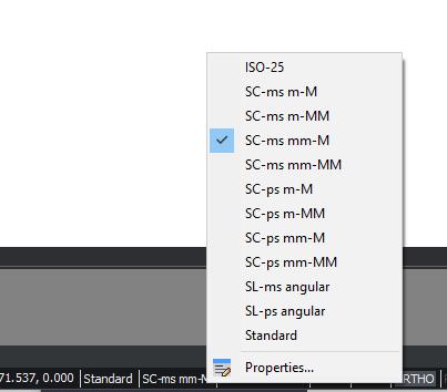 Voorbeeld: je werkt in Model Space in millimeter en je wil een terrein bematen waarbij de afstand in meter wordt aangegeven; kies dan SC-ps-mm-M.